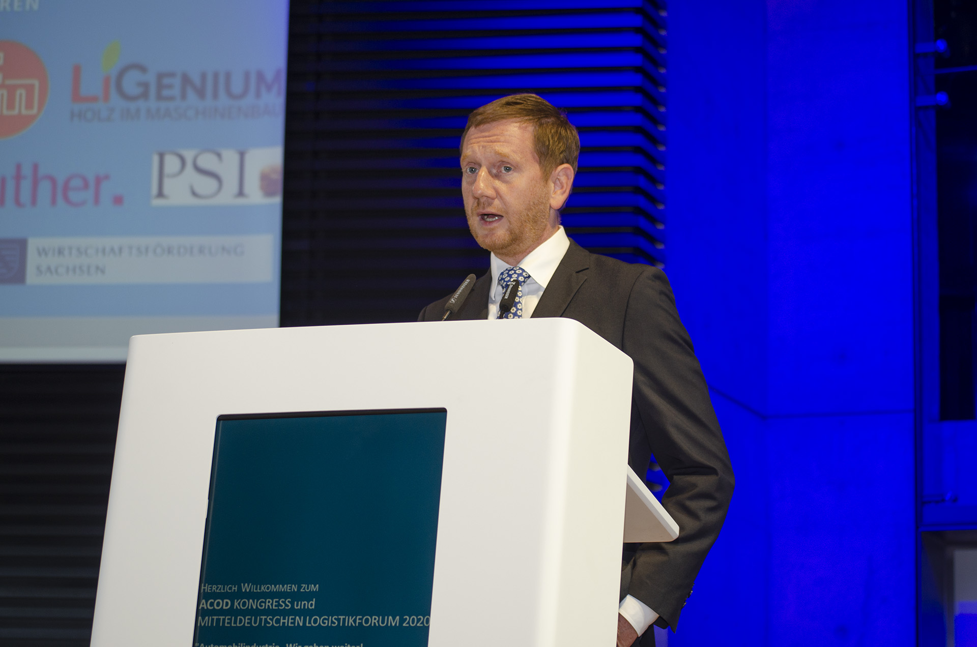 Im ersten Redebeitrag referierte der sächsische Ministerpräsident Michael Kretschmer über die Möglichkeiten und die Verantwortung der Politik und rief dazu auf, den wirtschaftlichen Wandel und die coronalen Auswirkungen gemeinsam zu meistern.