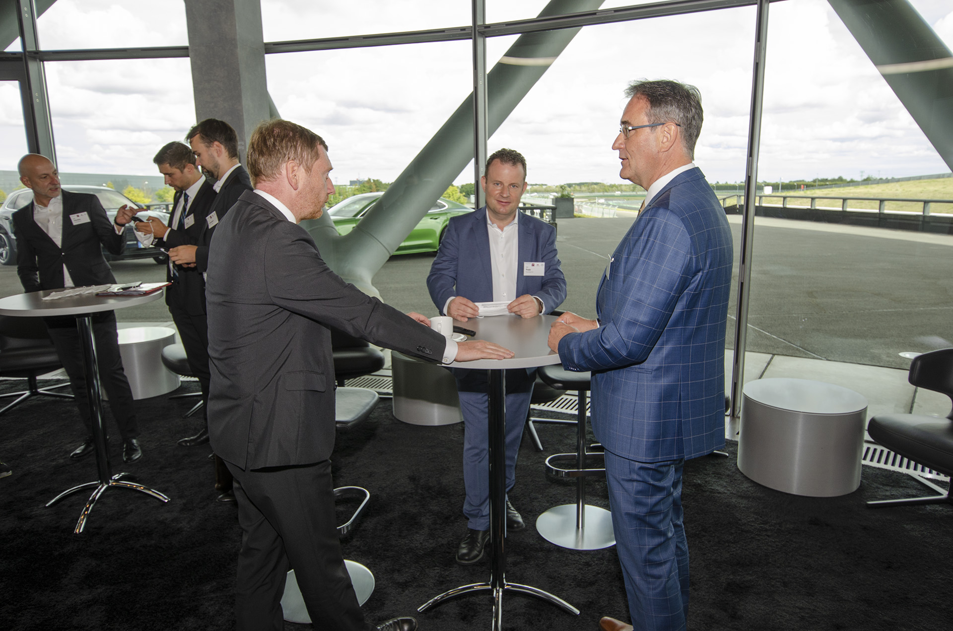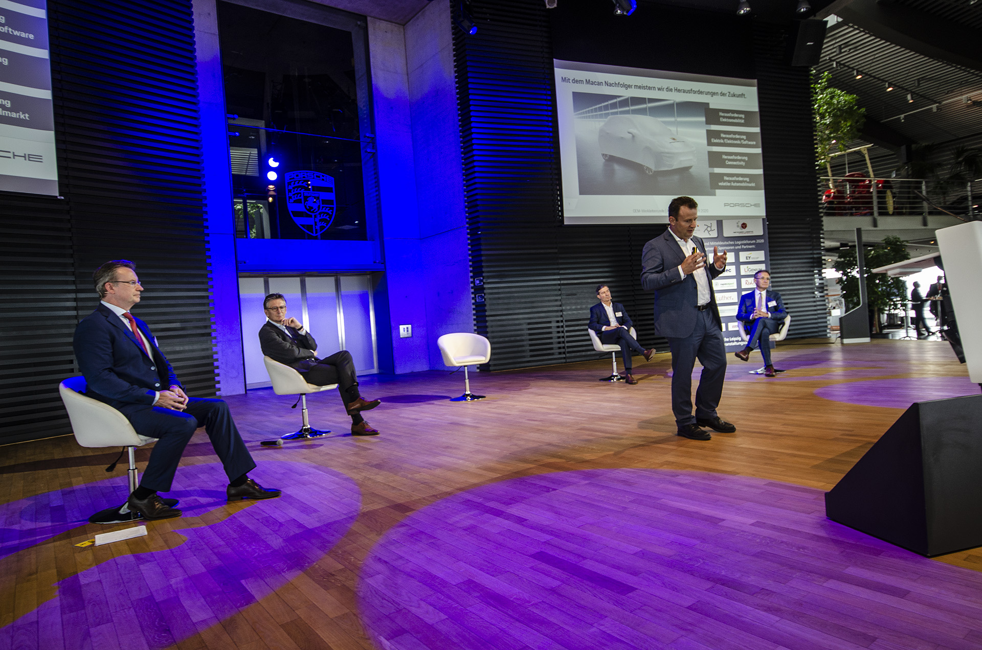 In einer Podiumsdiskussion diskutierten Hans-Peter Kemser, Werkleiter im BMW Werk Leipzig, Gerd Rupp von Porsche Leipzig, Dirk Moers, Volkswagen Sachsen GmbH und Dr. Markus Keicher vom Mercedes Benz Werk Ludwigsfelde über die Entwicklung der jeweiligen Standorte und warfen einen Blick in die Zukunft.