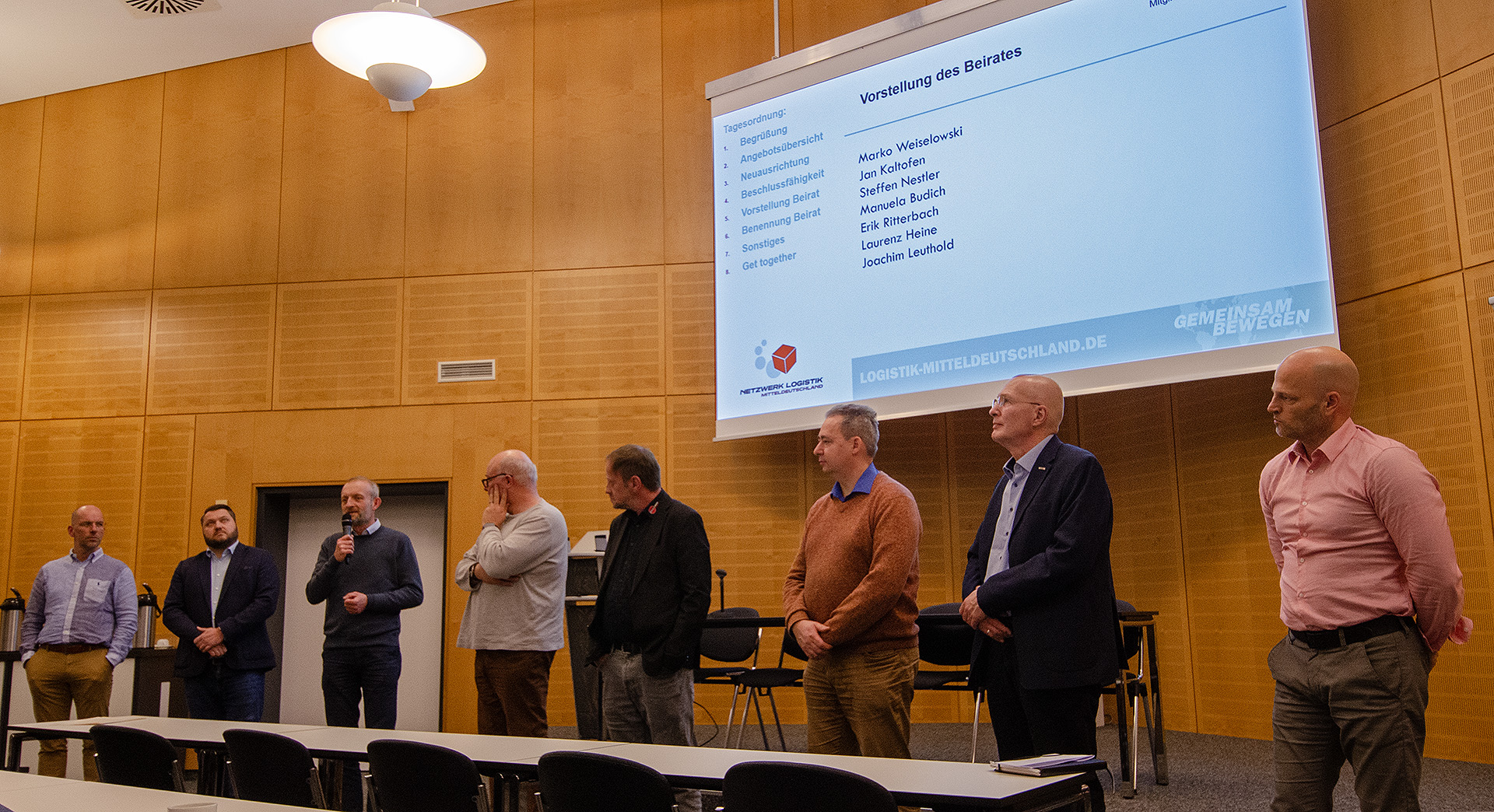 Zu Neuausrichtung und Stabilisierung der Netzwerkarbeit wurde ein vom Vereinsvorstand ausgewählter und zu berufender Beirat vorgestellt. Seine sieben Mitglieder, Vertreter aus Logistikwirtschaft, Kommunalpolitik (Wirtschaftsförderung Leipzig) und Kammern (IHK, Agentur für Arbeit) stellten sich und ihren persönlichen Einsatz für den Verein in kurzen Statements vor. Daraufhin wurde der Beirat von der Mitgliederversammlung einstimmig nominiert.